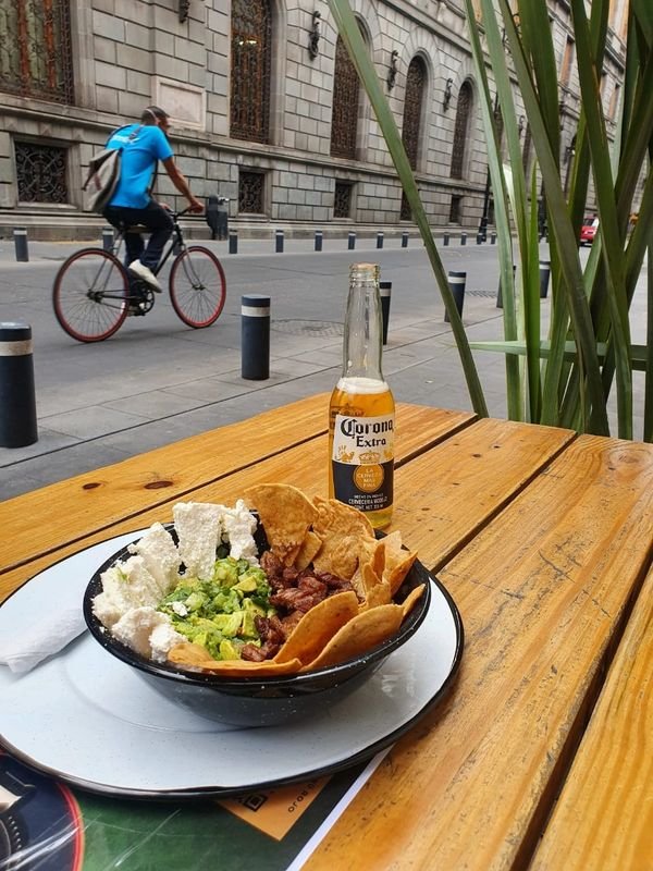 Sí, botanas mexicanas como chapulines, cacahuates enchilados, esquites y quesadillas.